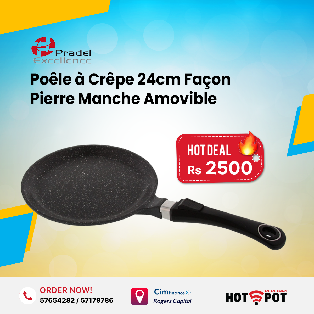 POELE A CREPES 24 cm FAÇON PIERRE MANCHE AMOVIBLE PRADEL EXCELLENCE