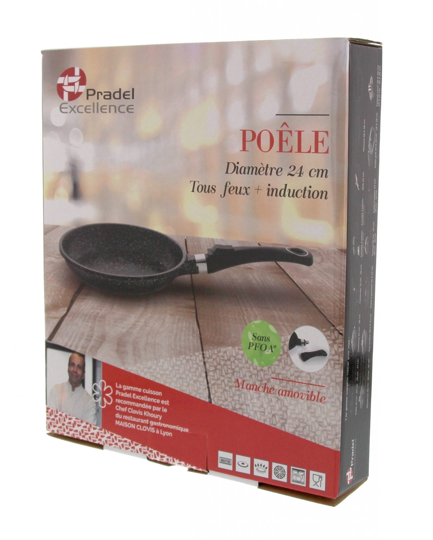 POÊLE 24 CM FAÇON PIERRE FONTE ALU TOUS FEUX / INDUCTION, MANCHE AMOVIBLE PRADEL EXCELLENCE