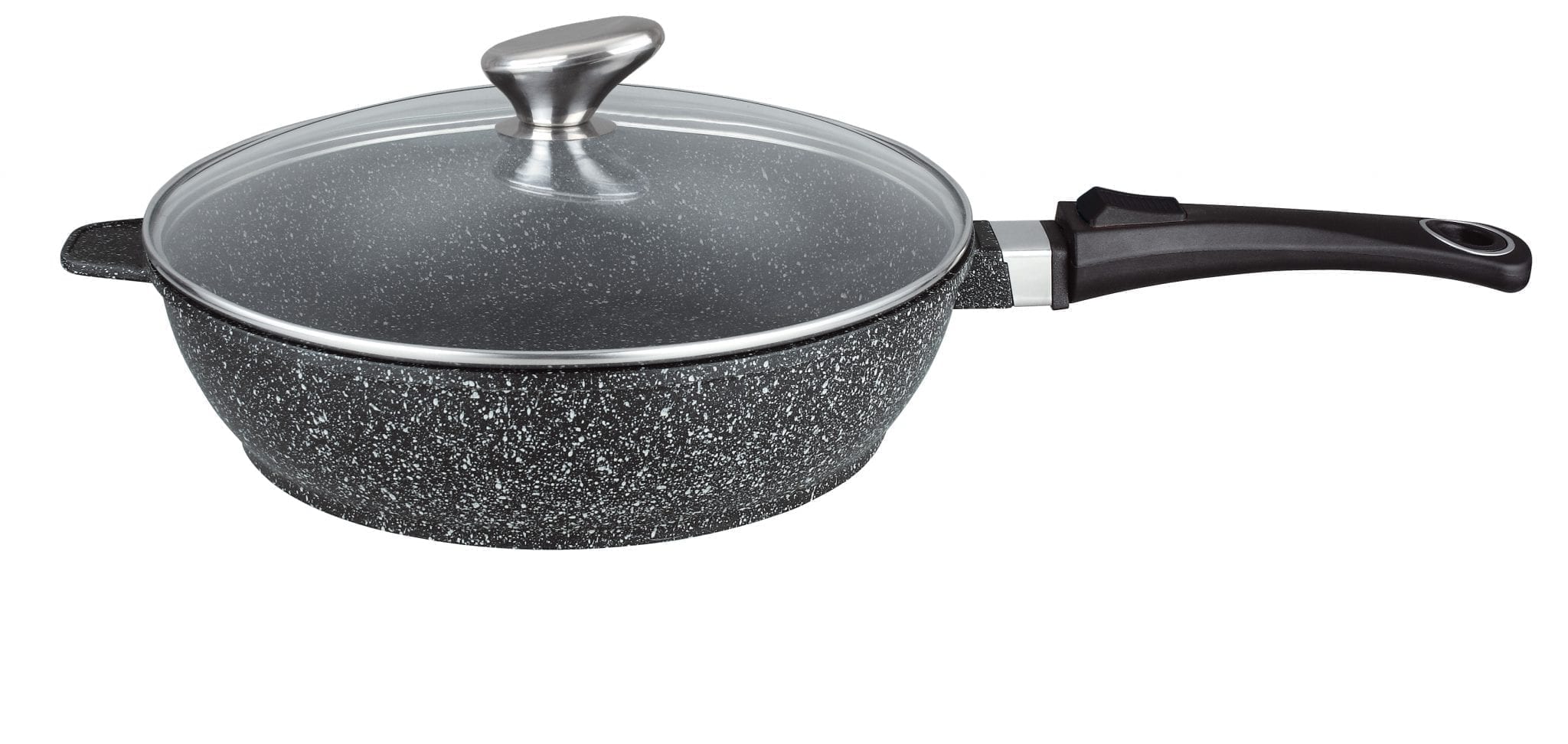 SAUTEUSE 24 CM FAÇON PIERRE FONTE ALU, COUVERCLE EN VERRE, TOUS FEUX / INDUCTION, MANCHE AMOVIBLE