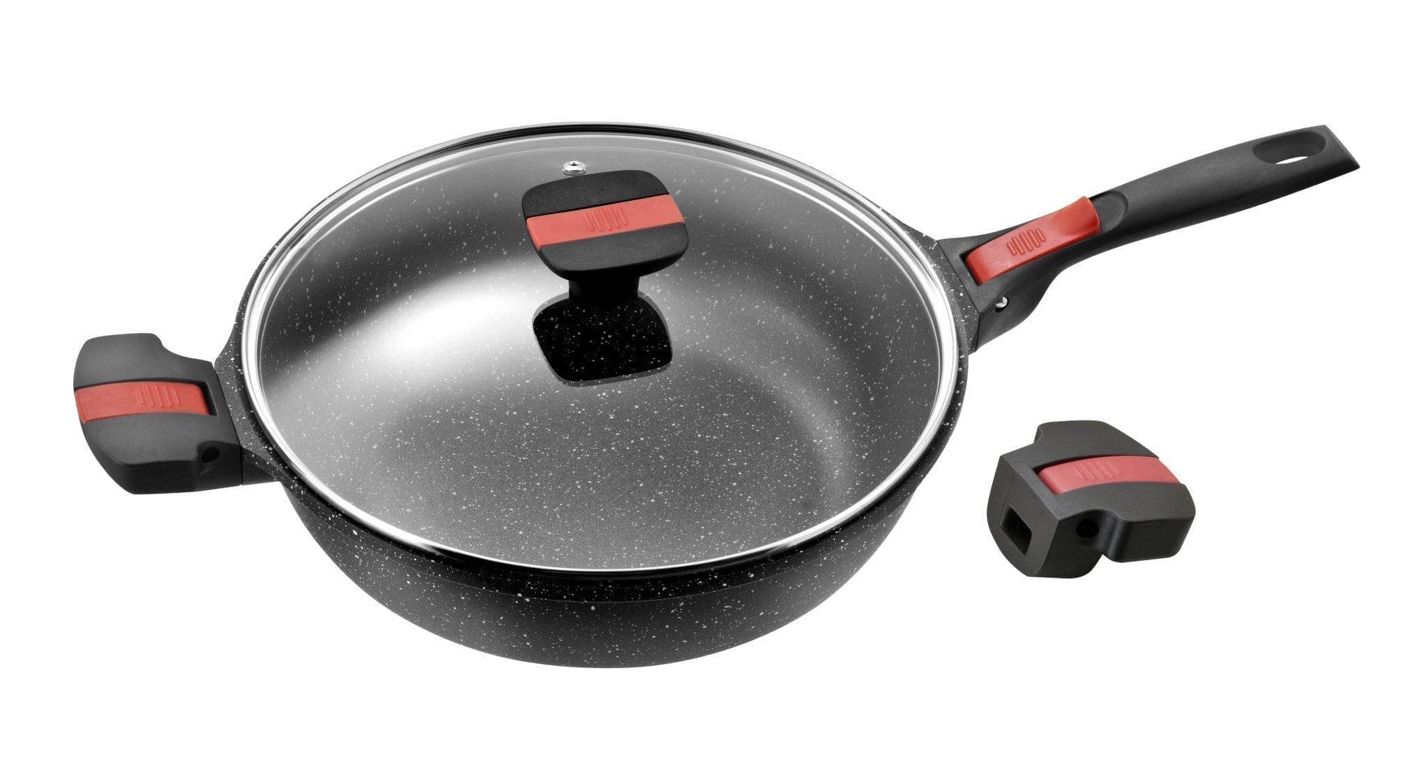 SAUTEUSE FAÇON PIERRE Ø 28 cm VOLNA MANCHE AMOVIBLE,COUVERCLE EN VERRE PRADEL EXCELLENCE