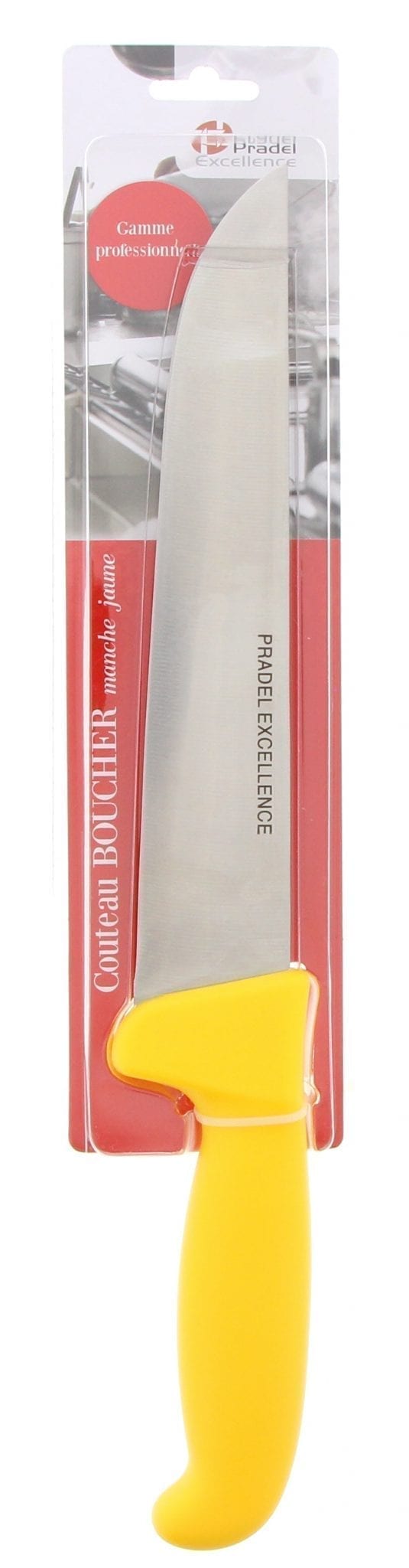 COUTEAU BOUCHER 21 CM MANCHE JAUNE SOUS BLISTER PRADEL EXCELLENCE