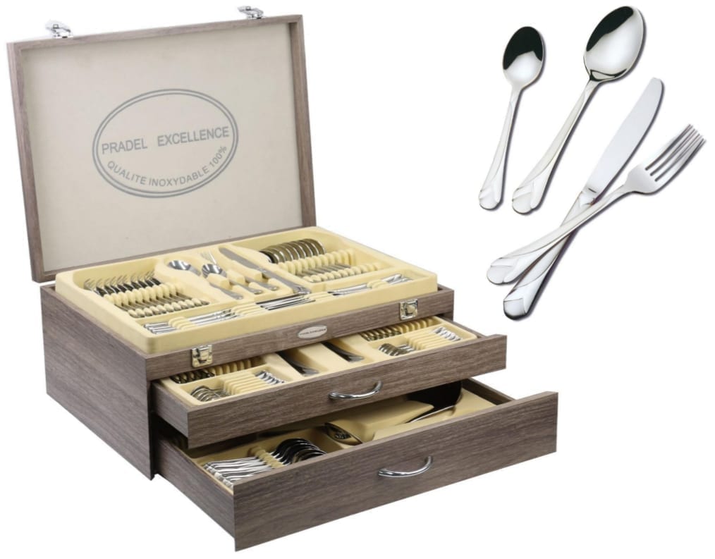 MENAGERE 113 PIECES AMBIANCE COFFRET BOIS 2 TIROIRS PRADEL EXCELLENCE